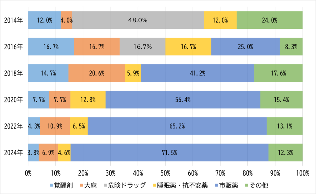 参考:全国の精神科医療施設における薬物関連精神疾患の実態調査(2024年)